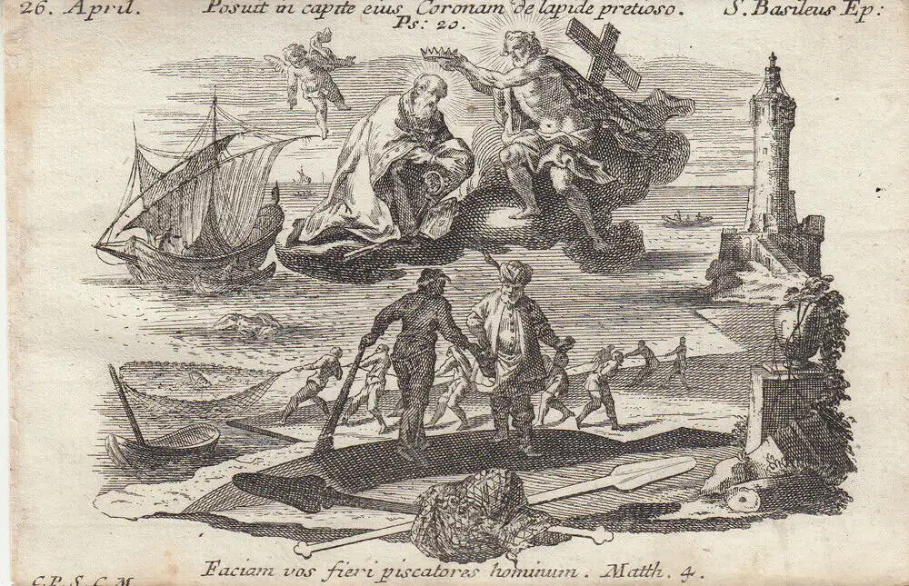Gebrüder Klauber Heiliger Basileus von Amasea Märtyrer Bischof Kupferstich 1750