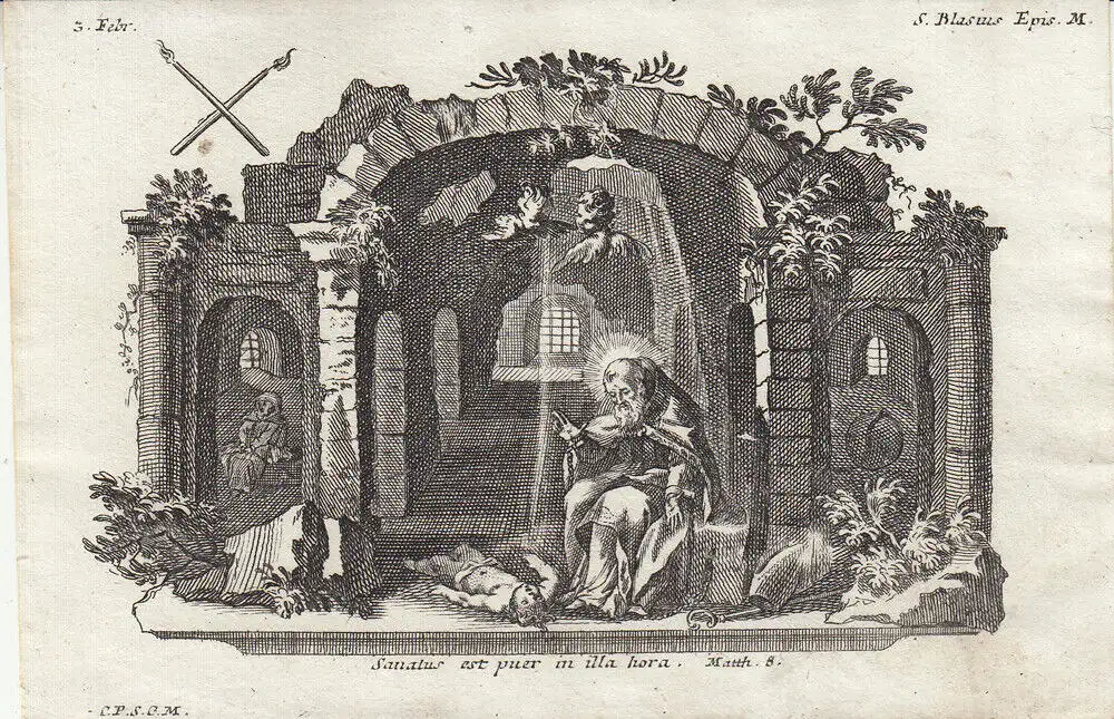Mann, der an einer Fischgräte zu ersticken drohte, das Leben rettete. Deshalb wird er gegen Halsleiden angerufen.