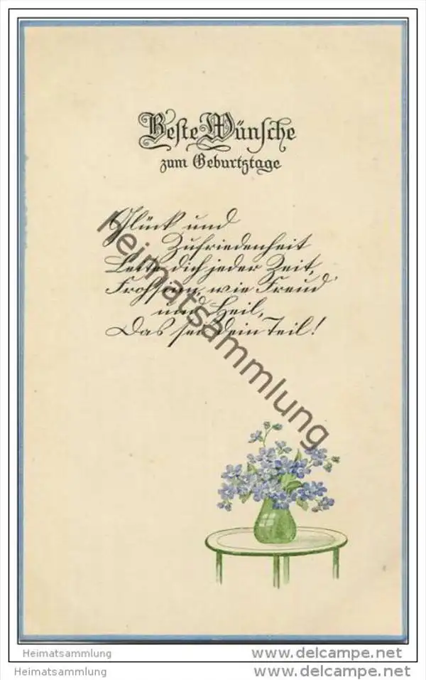 Geburtstag - Vergissmeinnicht in der Vase - Rückseite 1918 beschrieben (E10609)