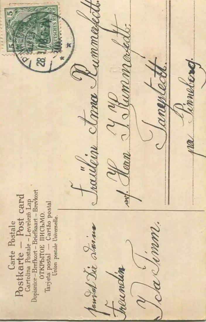 Geburtstag - zwei Kinder mit Blumen gel. 1908