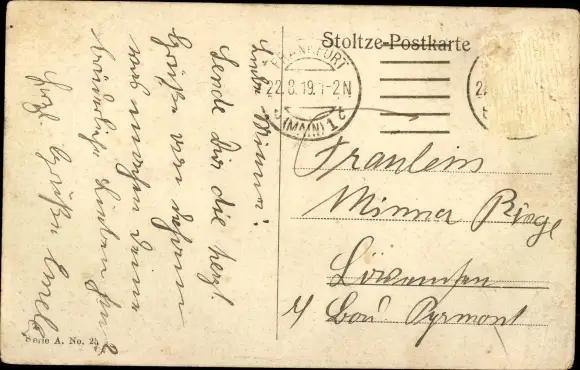 Zustand, siehe Scan, gelaufen, 1919 - ca 14 cm X 9 cm