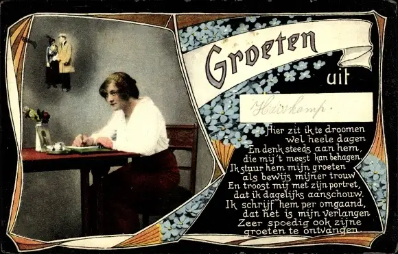 Gedicht Ak Grüße aus, Frau schreibt einen Brief
