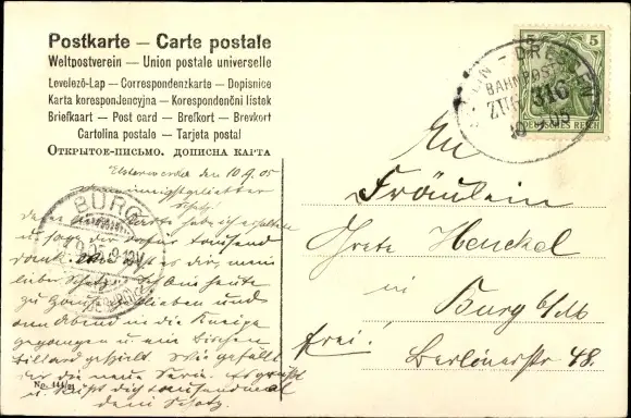 Zustand, siehe Scan, gelaufen, 1905 - ca 14 cm X 9 cm