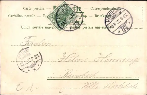 Zustand, siehe Scan, gelaufen, 1902 - ca 9 cm X 14 cm