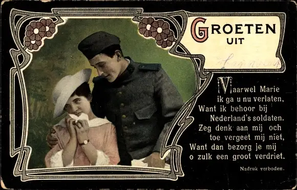 Gedicht Passepartout Ak Grüße aus, Niederländischer Soldat nimmt Abschied