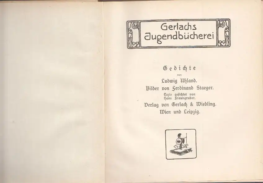 Bemerkungen: C.F. Heller in `Die Schiefertafel` Jg. IV, Heft 3, Dez. 1981 S. 159, 27 - Erste Ausg. in Gerlach`s Jugendbücherei. Bilder von Ferdinand Staeger. Texte gesichtet v. Hans Fraungruber. Vorsatzpapier "Mauskäfer" (Vgl. Heller 153).