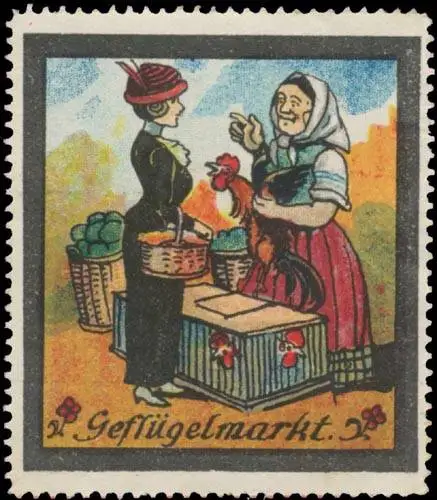 Geflügel, Größe/Zustand: 5x5 , leicht beschädigt, Original alte Reklamemarke die seinerzeit für die Werbung benutzt wurde