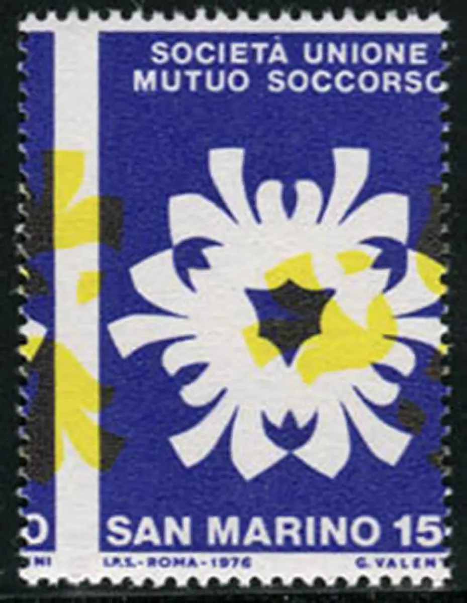 Union Mutuo Soccorso ohne Druck des roten Vollgummis MNH - Unione Mutuo Soccorso Nr. 969 ohne Rotdruck mit stark verschobener gelber Zahnung und Druck (Kat. IEC Nr. 984a) - Auffällig - Kat. 800 Code 679/11