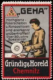 Hochglanz - Polierscheiben und Kompositionen sind anerkannt unübertroffen! Über 30 Jahre Spezialität. Gründig & Horeld, Chemnitz, Größe/Zustand: 6x4 , guter Zustand, Original alte Reklamemarke die seinerzeit für die Werbung benutzt wurde