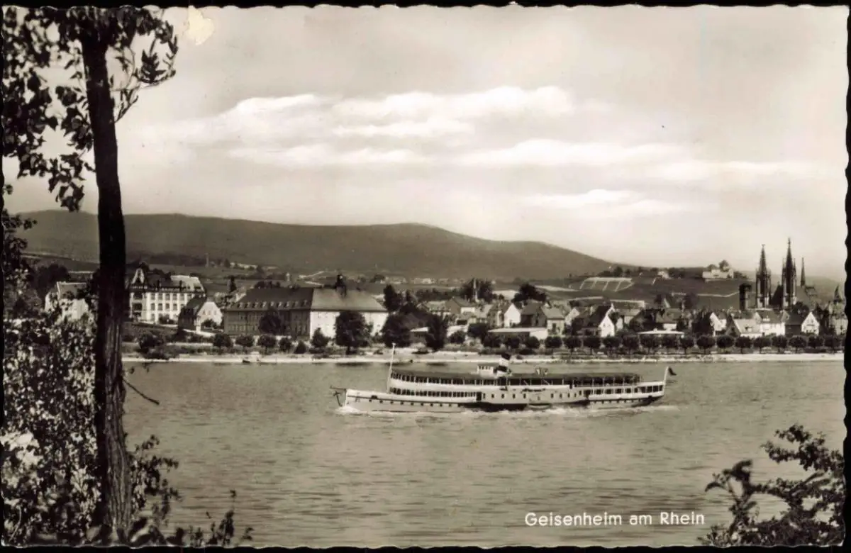 Geisenheim Panorama-Ansicht mit Rhein Schiff Fahrgastschiff 1965
