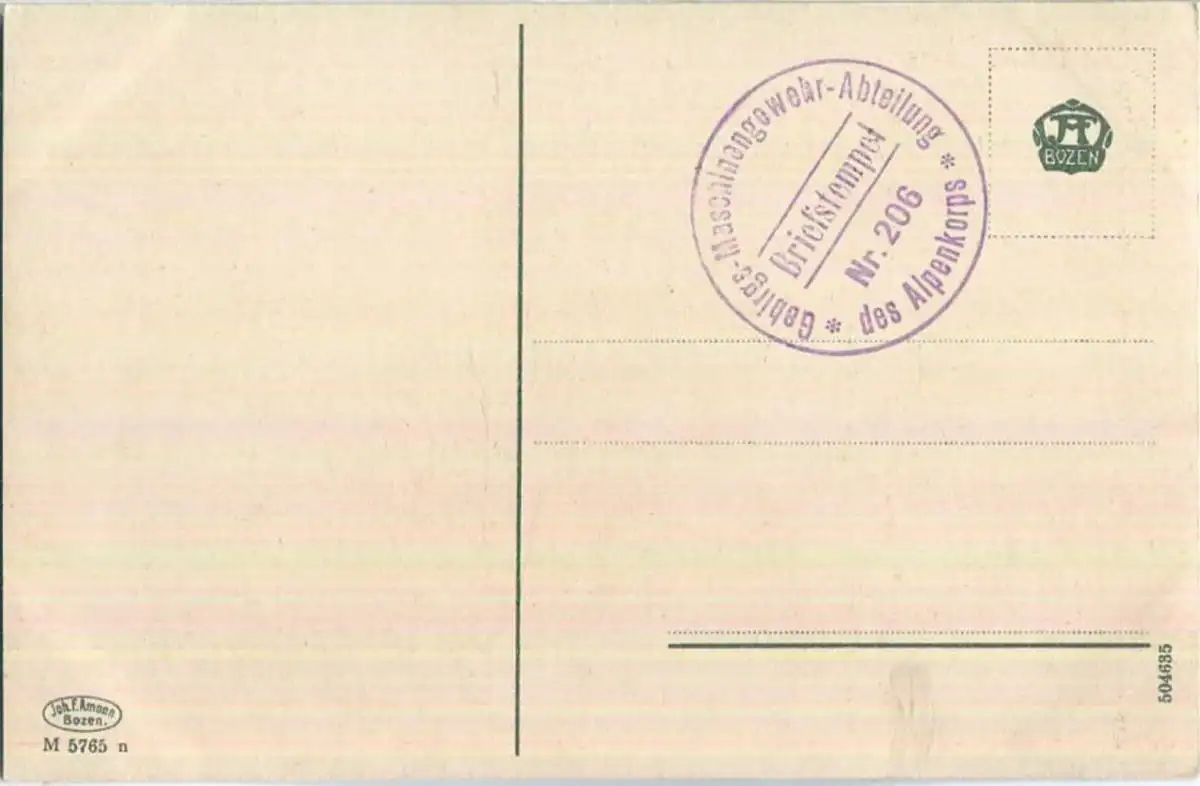 Geislergruppe - Verlag Joh. F. Amonn Bozen - rückseitig Briefstempel Nr. 206 Gebirgs-Maschinengewehr-Abteilung des Alpenkorps (G4064) *