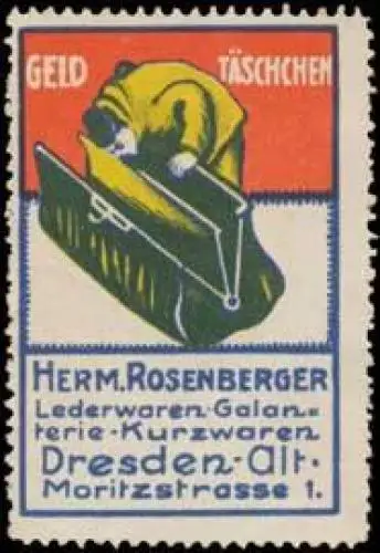Lederwaren, Galanterie-Kurzwaren, Größe/Zustand: 5x3 , I-II, Original alte Reklamemarke die seinerzeit für die Werbung benutzt wurde