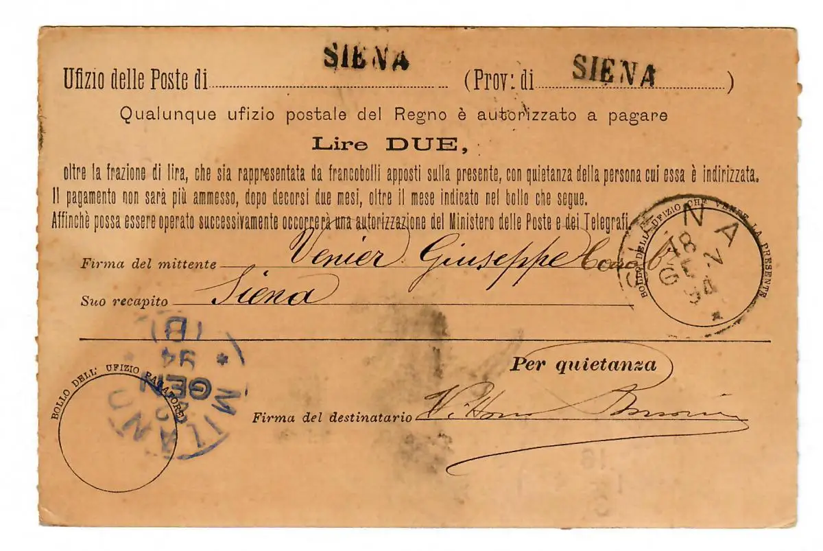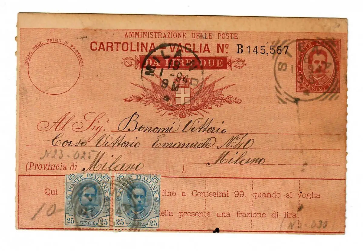 Geldanweisung/Cartolina-Vaglia 1894, Milano