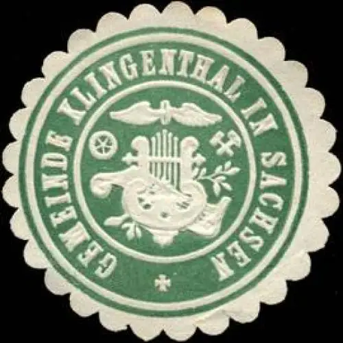 grün, weiß, geprägt, Musik, Bergbau, Größe/Zustand: 4 , guter Zustand, Original Verschluss-Siegelmarke aus Papier welche früher von Behörden, Firmen etc. zum Versiegeln der Briefe benutzt wurden