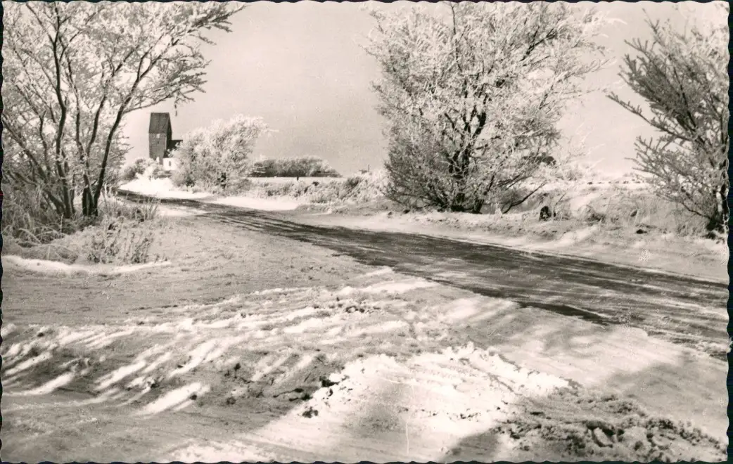 Gemeinde Sylt Verschneite Strasse Blick zur Keitumer Kirche 1960