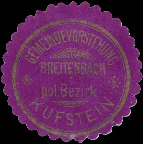 Pol. Bezirk Kufstein, violett, goldfarben, Größe/Zustand: 4 , leicht beschädigt, Original Verschluss-Siegelmarke aus Papier welche früher von Behörden, Firmen etc. zum Versiegeln der Briefe benutzt wurden