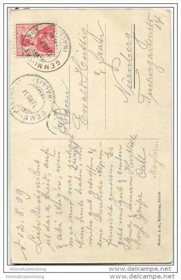 Gemmipass - Walliserseite - Verlag AG Kilchberg - Ecken teilweise leicht bestossen (G26847) gel. 1909