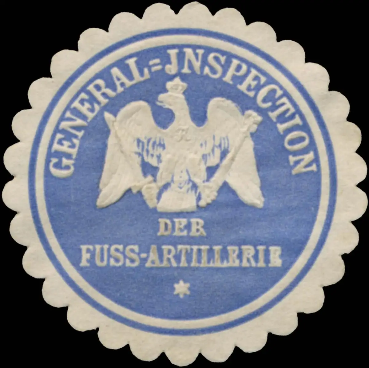 Fuss-Artillerie, Militär, blau, weiß, geprägt, Größe/Zustand: 4 , guter Zustand, Original Verschluss-Siegelmarke aus Papier welche früher von Behörden, Firmen etc. zum Versiegeln der Briefe benutzt wurden