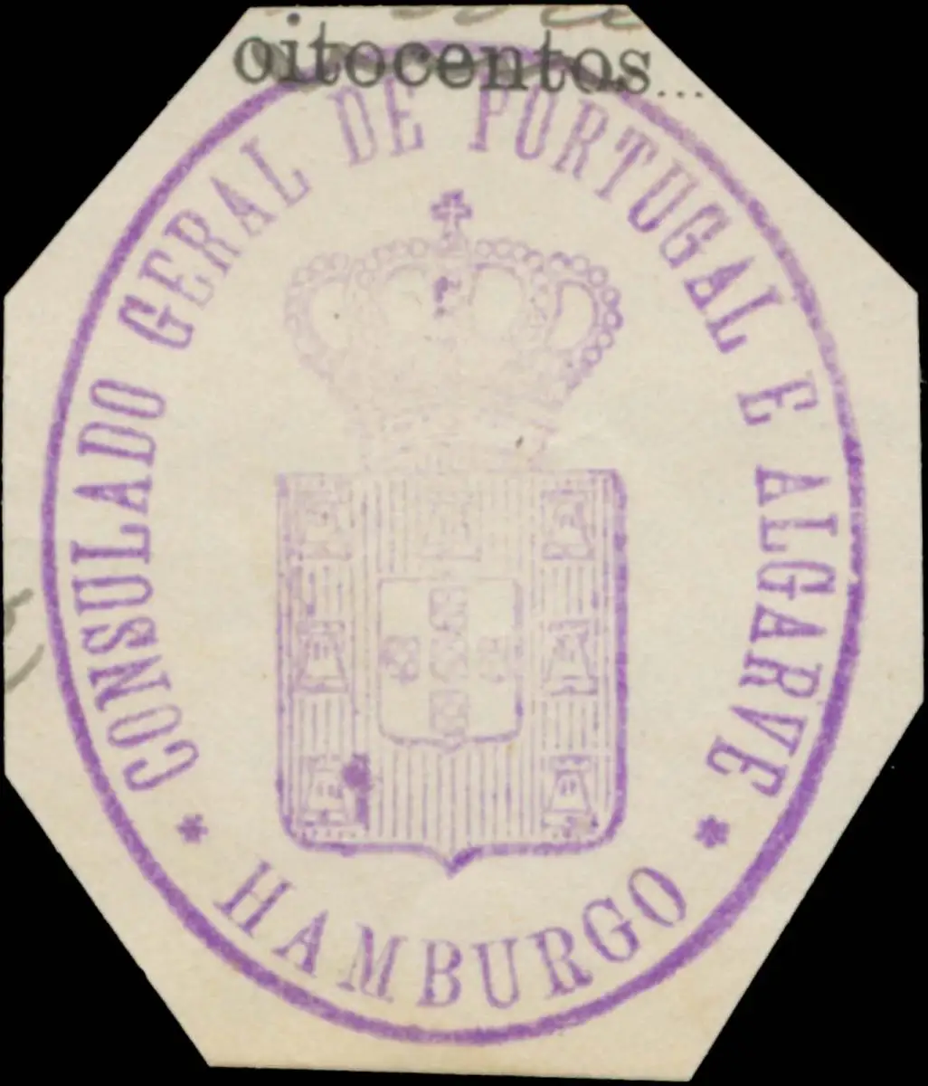 Consulado geral de Portugal e Algarve, Briefsiegelstempel, Größe/Zustand: 4x3 , guter Zustand, Original Verschluss-Siegelmarke aus Papier welche früher von Behörden, Firmen etc. zum Versiegeln der Briefe benutzt wurden