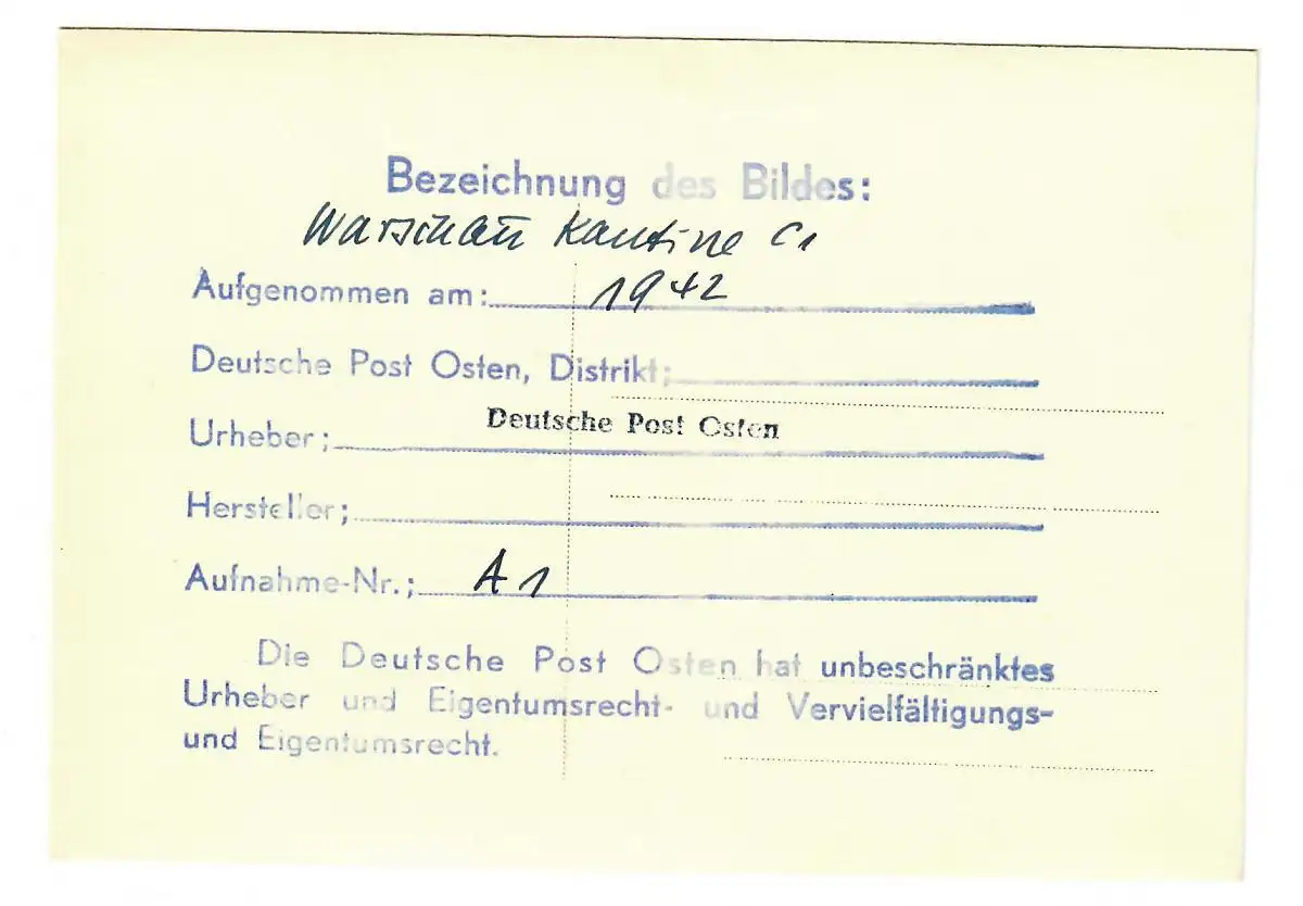 Foto in Postkartengröße der Kantine der DPO vom Postamt C1 in Warschau