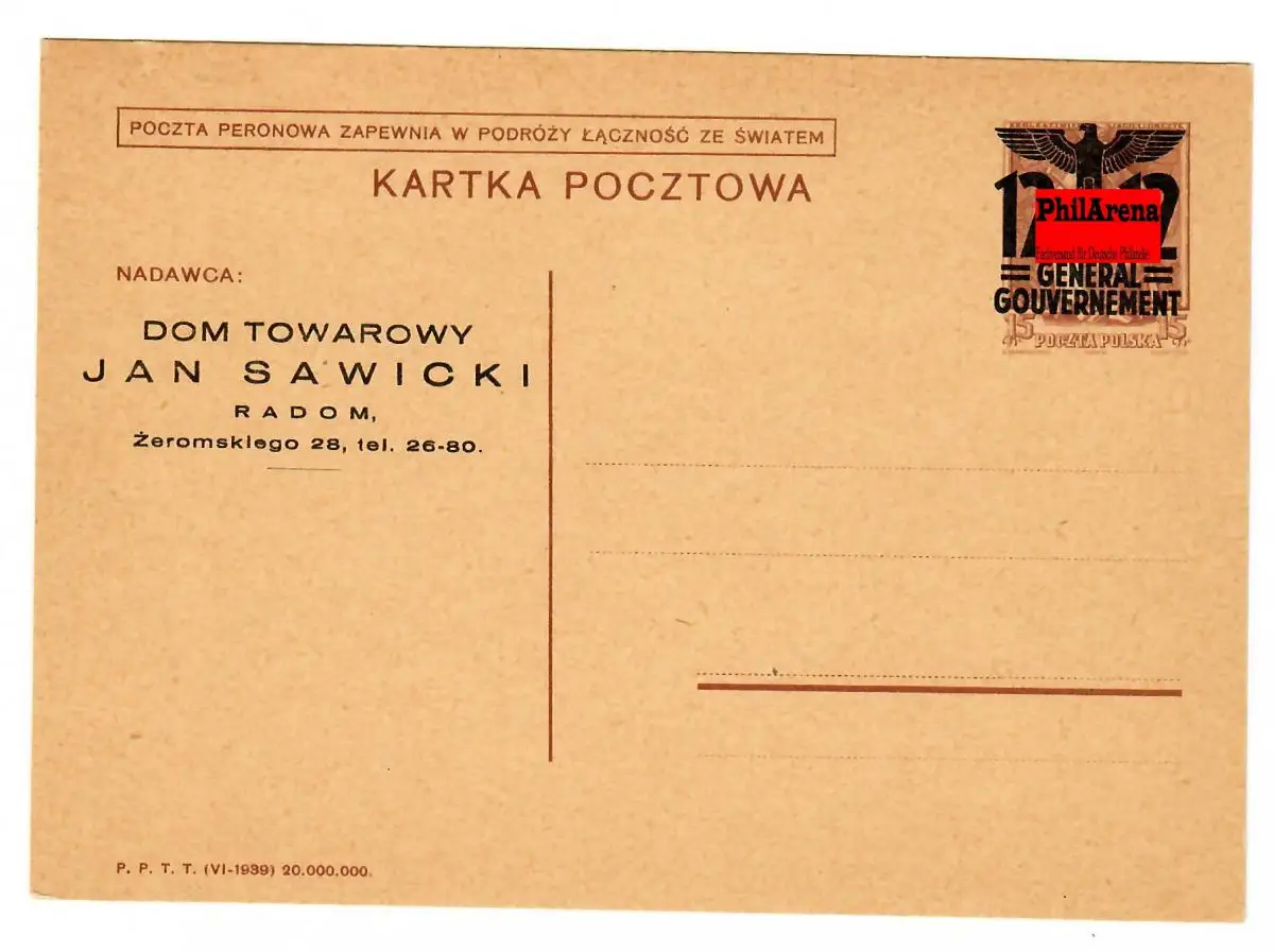Generalgouvernement Ganzsache GG: P4 Text 03, blanko *, Zudruck
