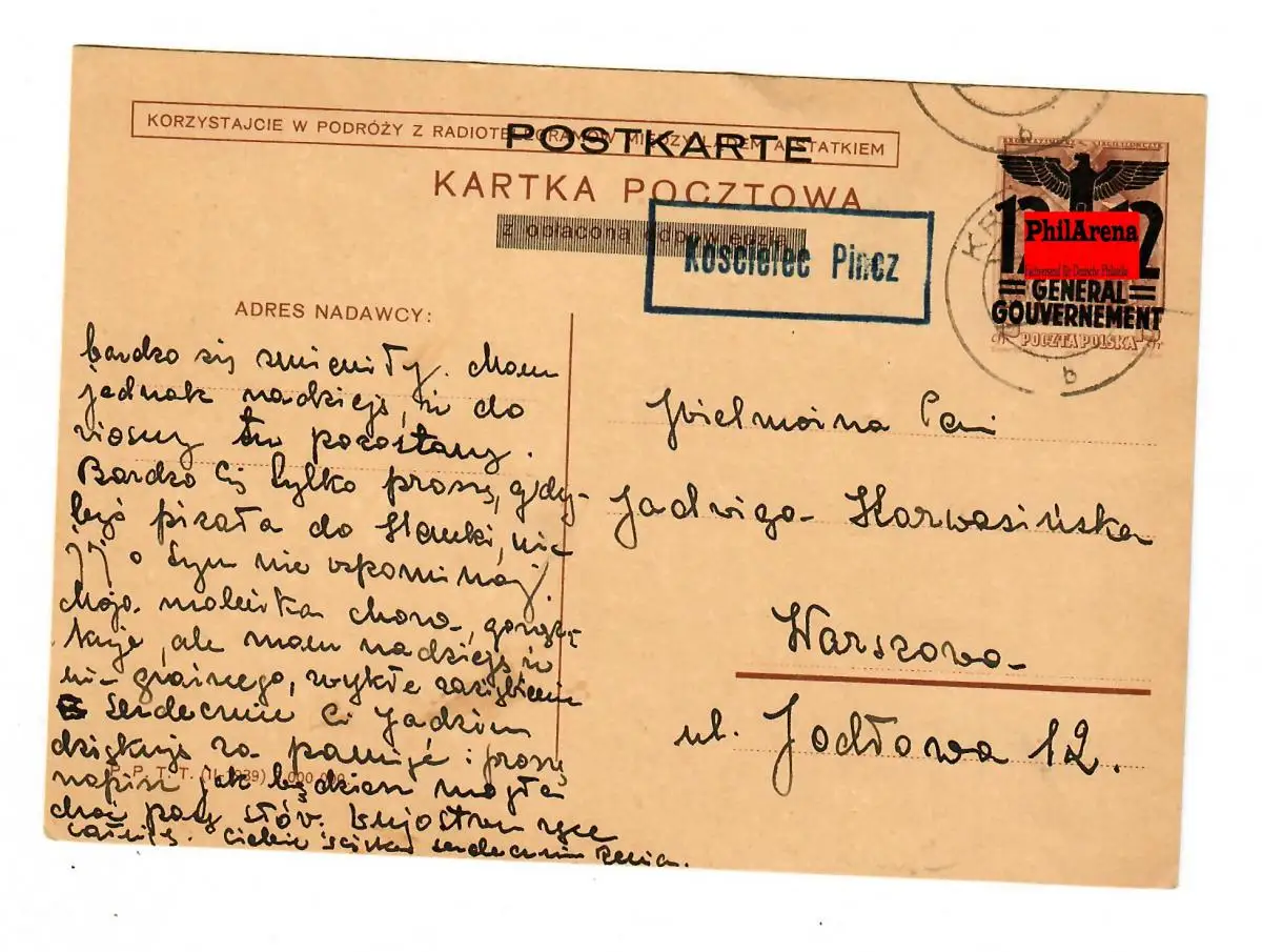 Generalgouvernement Ganzsache GG P7 Frage, Text 02: Koscielec Pincz-Warschau