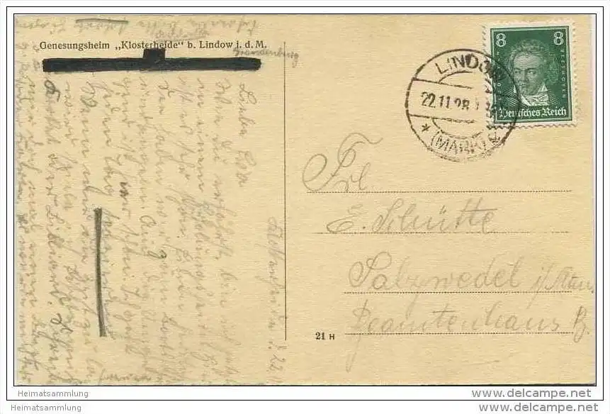 Genesungsheim Klosterheide bei Lindow in der Mark - Seeseite (G25702) gel. 1928