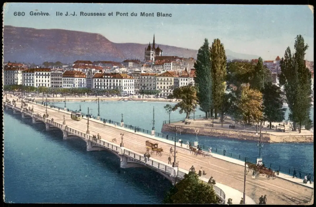 Genf Genève Panorama lle J.-J. Rousseau et Pont du Mont Blanc 1910
