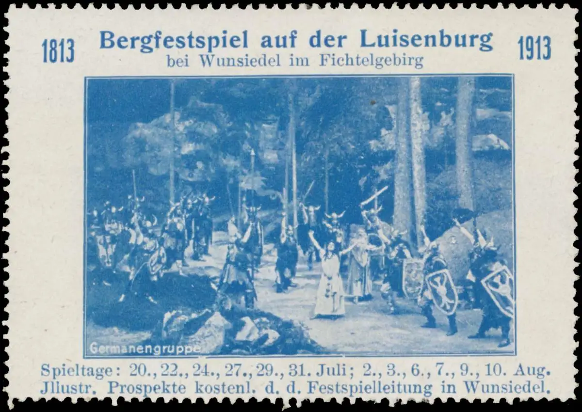 Bergfestspiel auf der Luisenburg bei Wunsiedel im Fichtelgebirge, 1813-1913, Diethelm von Losburg , Größe/Zustand: 5x8 , guter Zustand, Original alte Reklamemarke die seinerzeit für die Werbung benutzt wurde