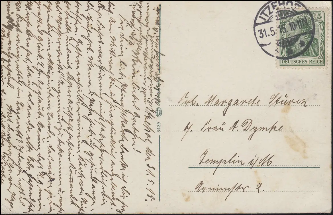 Germania 5 Pf. EF auf AK Wilhelmshöhe Tempelchen mit Aquadukt-Wasserfall, 1915