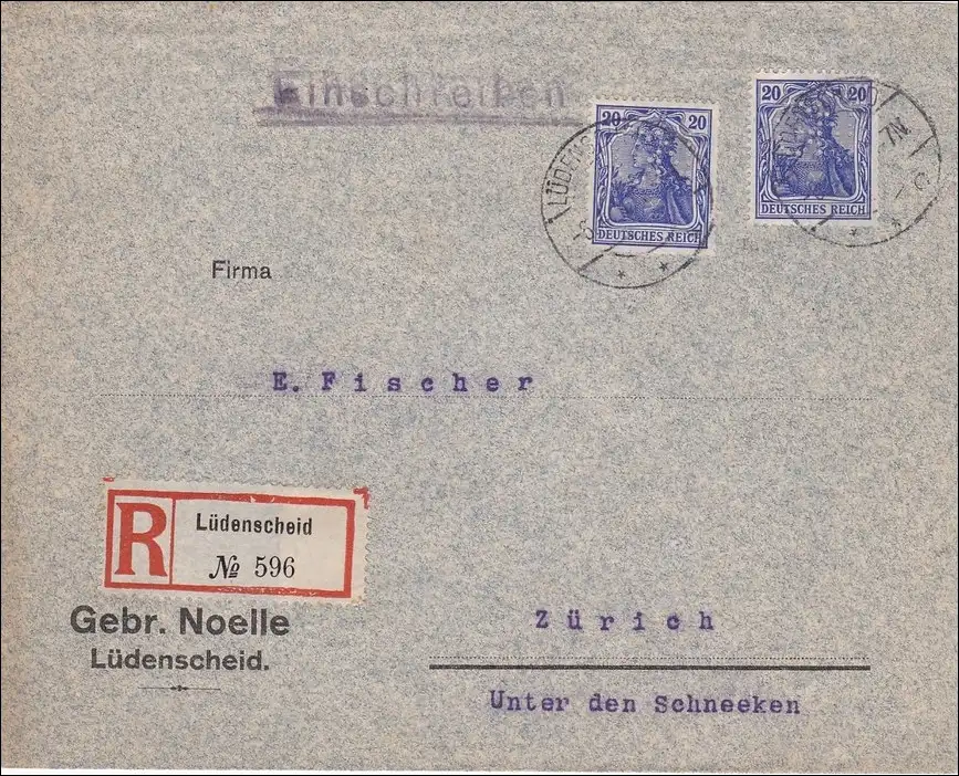 Germania: Brief Einschreiben Lüdenscheid nach Zürich