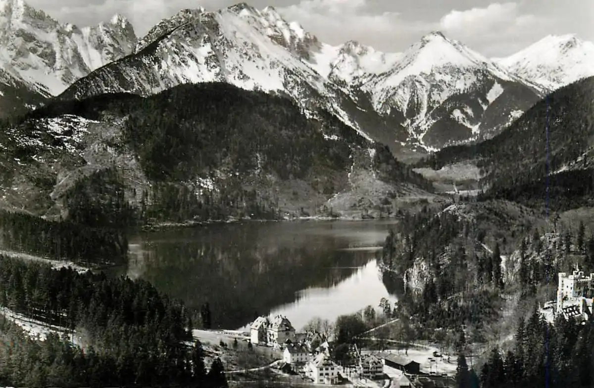 Germany Alpsee mit Hohenschwangau und Tiroler Hochgebirge