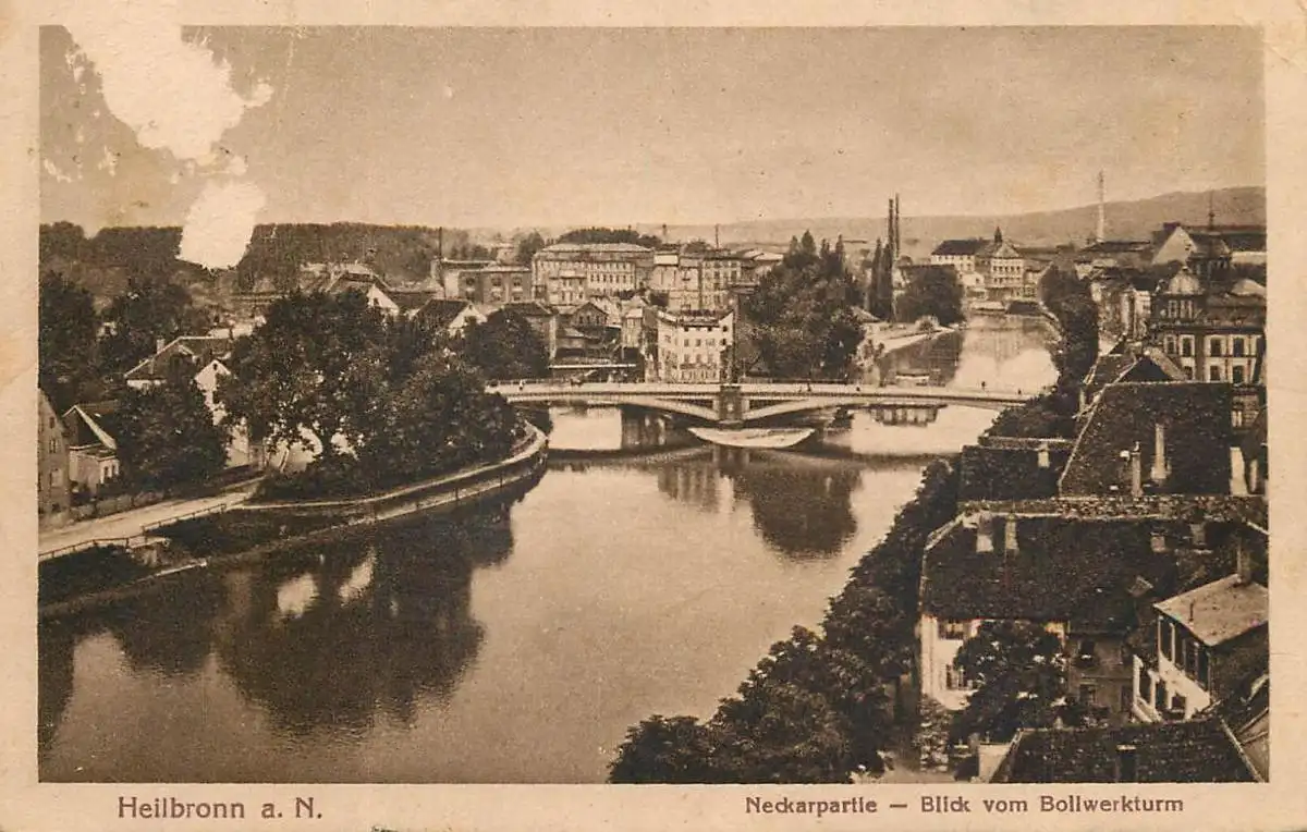 Germany postcard Heilbronn Neckpartie blick vom Bollwekturm