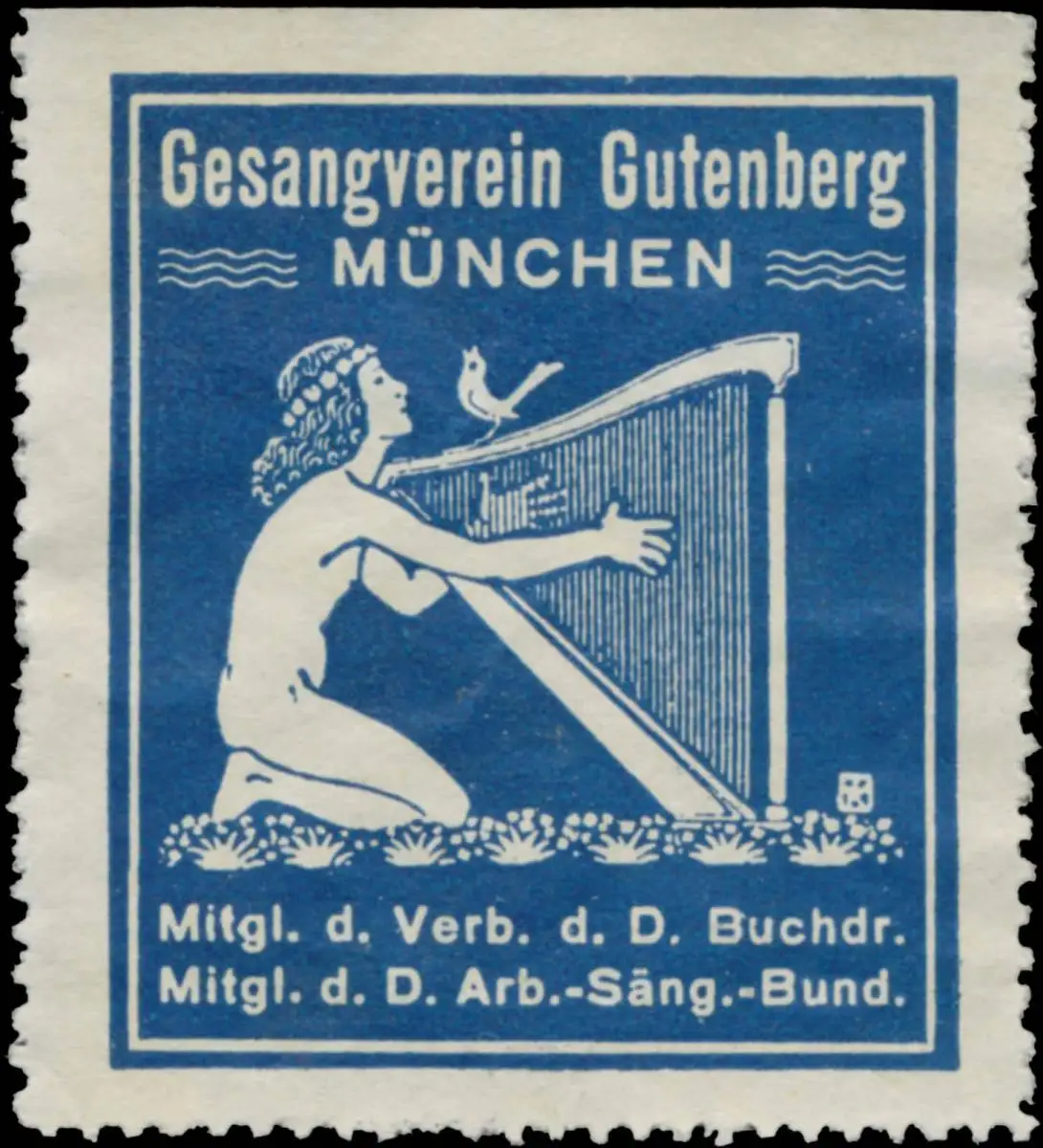 Mitglied d. Verb. D. Buchdr. und d.D. Arbeiter-Sänger-Bundes, Musik, Harfe, blau, Größe/Zustand: 5x4 , guter Zustand, Original alte Reklamemarke die seinerzeit für die Werbung benutzt wurde