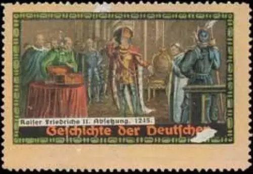 Kaiser Friedrich II. Absetzung, Größe/Zustand: 4x6 , beschädigt, Original alte Reklamemarke die seinerzeit für die Werbung benutzt wurde