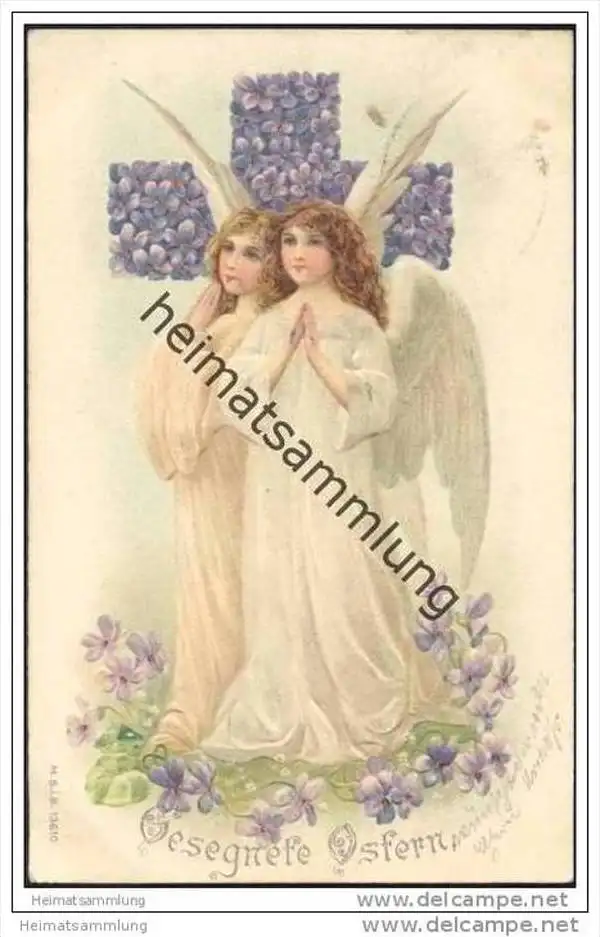 Gesegnete Ostern - Engel - Veilchen - Verlag M. S. i. B. - Prägedruck (G20222) gel. 1908