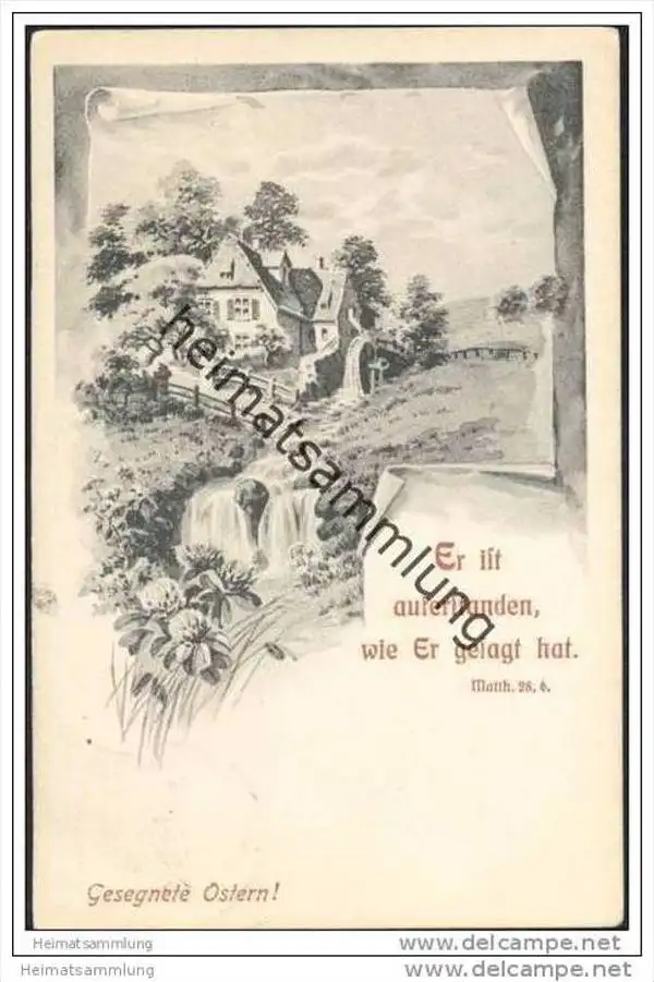 Gesegnete Ostern - Er ist auferstanden.... Matthäus 28. 6 - Wassermühle (E3816) gel. 1912