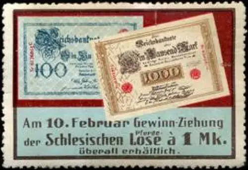 der Schlesischen Pferde - Lose, Lotterie, Größe/Zustand: 4x6 , guter Zustand, Original alte Reklamemarke die seinerzeit für die Werbung benutzt wurde