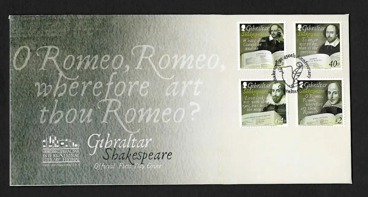 Gibraltar: 450. Geburtstag von William Shakespeare, FDC, #1625-28