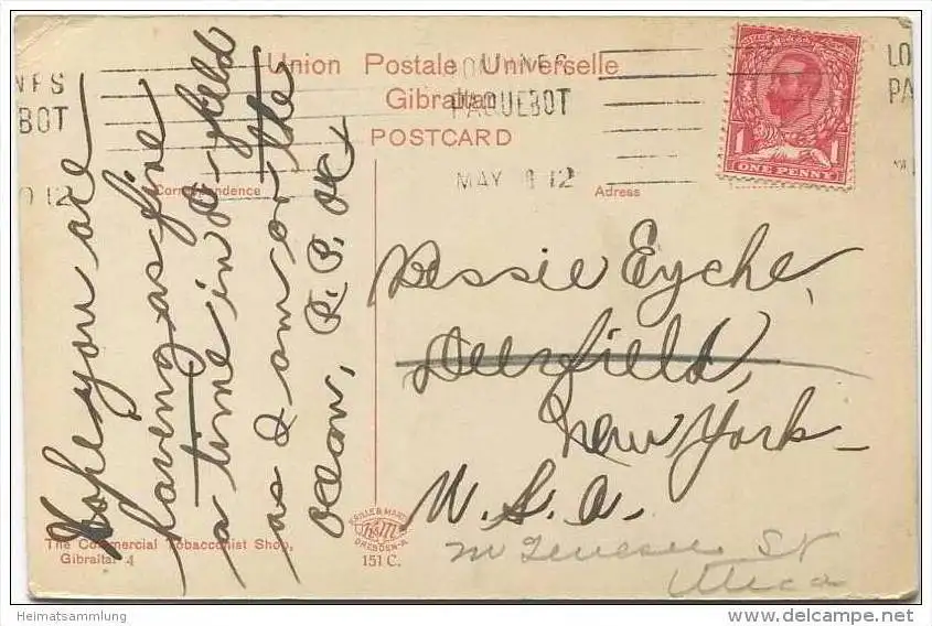 Gibraltar - The Rock from the commercial mole - Eckknick oben rechts (E13735) gel. 1912
