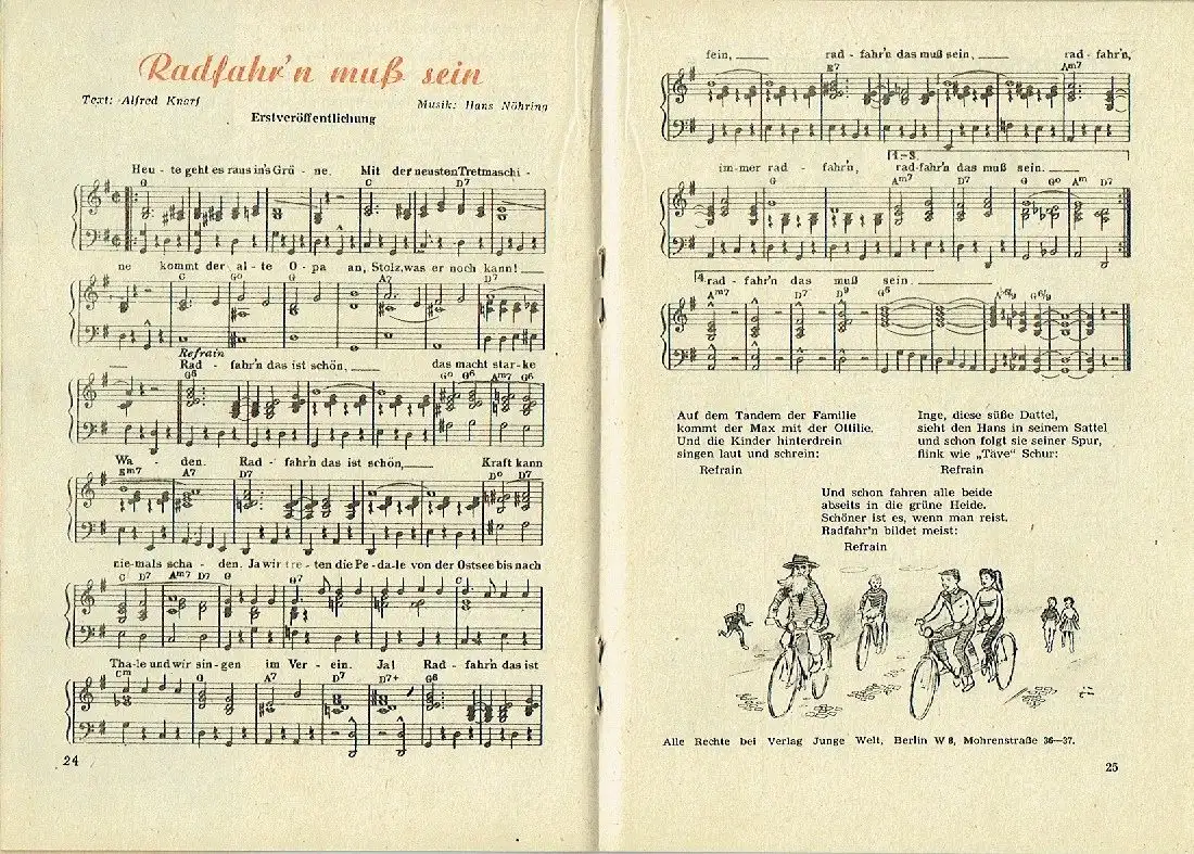 sehr guter Zustand, geringe Gebrauchs- und Alterungsspuren, viele Berichte von der X. Friedensfahrt 1957 - Täve Schur: Drei Hauptstädte - ein Begriff: Friedensfahrt - Statistiken, Karikaturen, Fotos, Zeichnungen - Zwischen Start und Ziel - Ihr fragt - wir antworten - Dramatische Sekunden (Helmut Stolper trägt sein Rad nach einem Sturz über die Ziellinie) - Da grinst die Defekthexe - Roland Henning: Sind Rennfahrer abergläubisch ? - Mechaniker Erich Winkler: Helfen - die schönste Tradition - Radfahr'n muss sein - Erstveröffentlichung eines Liedes von Alfred Knarf und Hans Nöhring - Ergebnisse der Friedensfahrten von 1948-1957 - Die Sieger 1948-1957 - Karikaturen von Kurt Franke - Beilage: Streckenführung und Klassement der XI. Fahrt 1958 - Das Pech nahm kein Ende (1956 erste Teilnahme der Italiener) - Auf den Spuren Täve Schurs - Werner Schiffner: Hohe Übersetzungen sind die Wurzel allen Übels - Erich Winkler: Wie erreicht man die Übersetzung ? - Heinz Florian Oertel: Da kam ein Ü-Wagen des Wegs ... - Splitter (Anekdoten) - Rätsel, Softcover, ca. 14 x 20, 48 Seiten mit zahlreichen Bildern und Illustrationen / Karikaturen + 8 Seiten Friedensfahrt-Beilage (komplett)