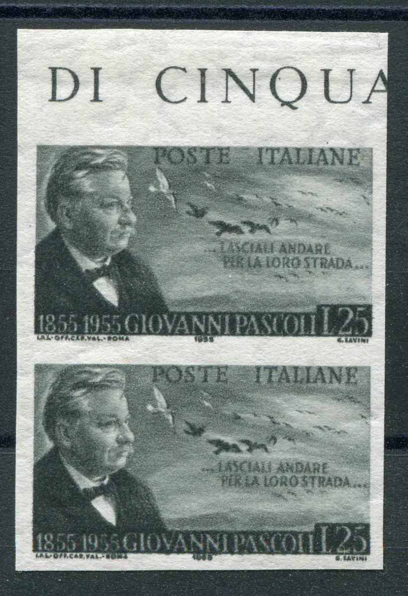Giovanni Pascoli Lire 25 ungezähnte Sorten Vollgummi - Giovanni Pascoli Lire 25 Nr. 792/I ungezahntes Paar a. von f. (Sass. spec. Nr. 356 Ea) - Sehr schön und ungewöhnlich - Kat. euro 800 Code 511/8