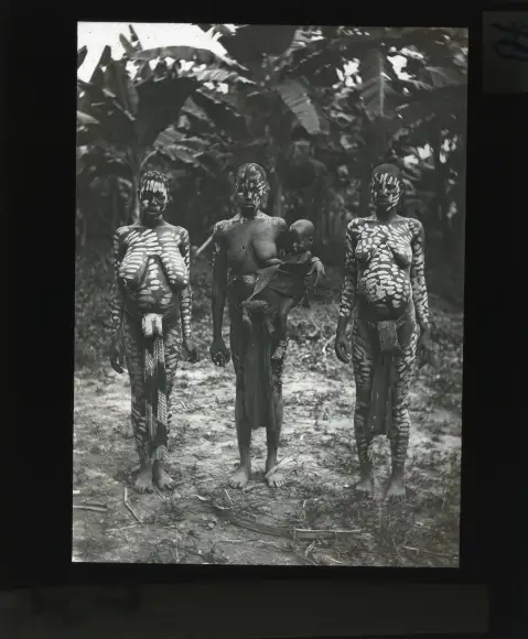 Glas Positiv Deutsch Ostafrika um 1913, Trauernde Frauen auf dem Weg zu einer Beerdigung