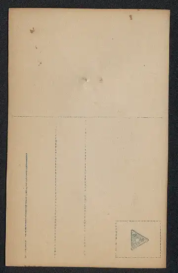 Personenbezogene Daten auf der Rückseite der Karte wurden durch blauen Textmarker unkenntlich gemacht. Die blauen Stellen sind auf die Vorderseite durchgeweicht und wirken sich negativ auf das Postkartenfoto aus