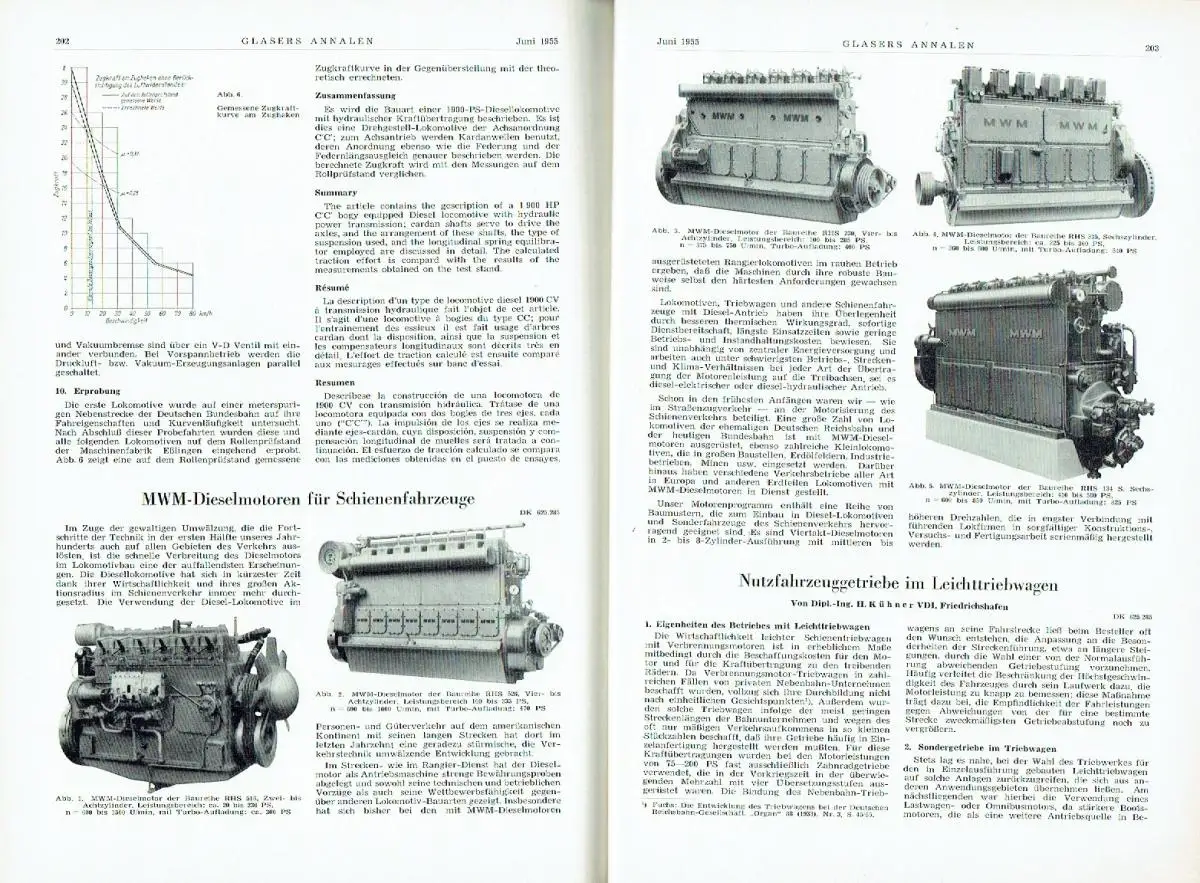 guter bis sehr guter Zustand, geringe Gebrauchs- und Alterungsspuren: kleine Blessuren - Vorderseite mit kleinem Dreiangel im unteren Rand - Umschlag und Seiten teils etwas eselsohrig, Heim: Laufleistungen und Unterhaltungskosten rasch laufender Motoren mittlerer Leistung im Betrieb der Deutschen Bundesbahn - Lindner: Henschel-Diesel-hydraulische Drehgestell-Lokomotive DH 875 - Bredenbreuker u. Feustel: Laufwerksanordnung von dreiachsigen Diesellokomotiven mit Blindwellenantrieb - Wagner: Eine neue dreifach gekuppelte Diesellokomotive im Einsatz eines Hüttenwerks - 1220/1100 PS-dieselhydraulische Lokomotive mit Einzelachsantrieb - Heinrich: Dreiteilige dieselhydraulische Triebwagenzüge für Brasilien - C ' C ' 1900 PS Diesel-Lokomotive mit hydraulischer Kraftübertragung für Meterspur - MWM-Dieselmotoren für Schienenfahrzeuge - Kühner: Nutzfahrzeuggetriebe im Leichttriebwagen - Neue Geräte der Schaltbau GmbH München - Transportbehälter aus Baustahlgitter - Ölfilterung - ein wichtiger Motorschutz - Bewährte Nadellager mit Einzelführungskäfig - Abteilungspräsident a. D. Rintelen 80 Jahre alt - Untersuchung der Schlingerbewegungen von Eisenbahnfahrzeugen (Preisausschreiben), kartoniert, ca. 21 x 29,5, 38 Seiten mit einigen Bildern + 20 weitere Seiten Reklame