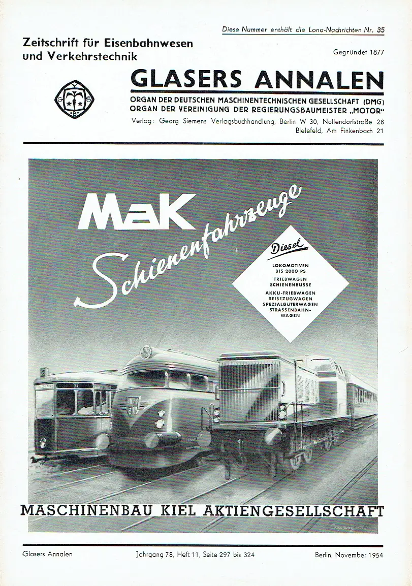 Glasers Annalen Zeitschrift für Verkehrstechnik und Maschinenbau.