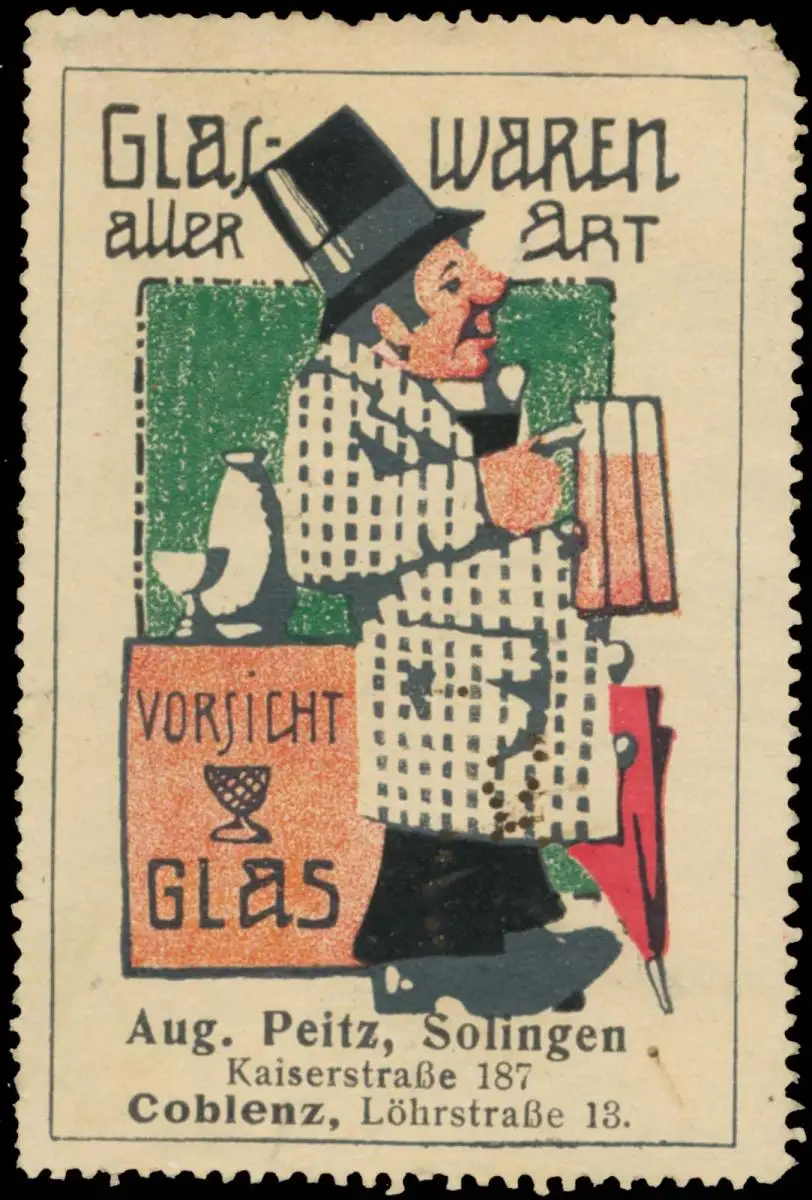 Solingen, Kaiserstraße 187, Koblenz, Löhrstraße 13, Größe/Zustand: 7x5 , guter Zustand, Original alte Reklamemarke die seinerzeit für die Werbung benutzt wurde