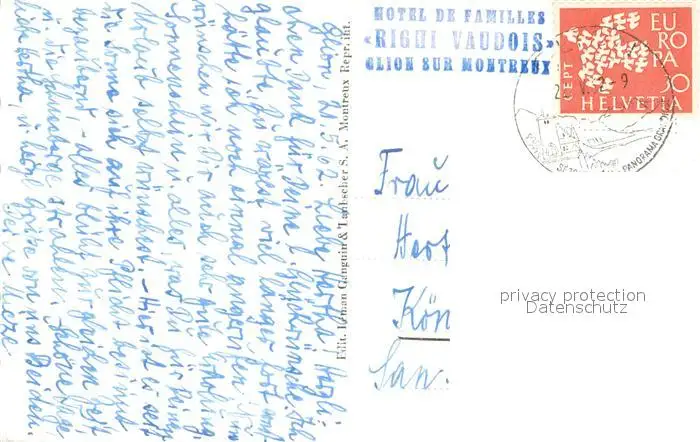 Glion Hotel Right Vaudois Glion postalisch gelaufen 1962 Erhaltung siehe scans [WerneD78] WernPID7