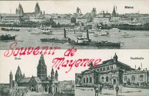 Glitzer Ak Mainz am Rhein, Mayence, Dom, Stadthalle, Salondampfer