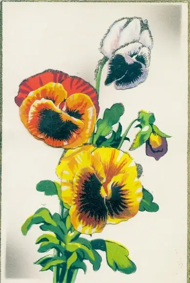 Glitzer Ak Stiefmütterchen, Blumen